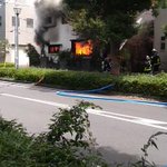 横芝光町で火事を目撃した。強い南風に煽られて、建物だけでなく隣の林にも飛火し延焼していた。消防車はこの後できた。 https://t.co/QJJSplsw3d