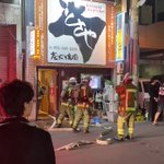 なんか煙っぽい匂いするなー って思いつつ歩いてて コンビニで飴ちゃん買って出たら 消防車が何台も来て コンビニの裏の飲食店の裏口あたりから煙が出ていた← https://t.co/6ahuwGmLa2