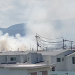 煙の範囲が広がってきた!黒い煙から白い煙に変わってきたから消化活動してんのかなとも思うけど💦 あのあたり宅地で家が密集してるから延焼しないか心配(>︿<。) #火事 https://t.co/PCqbm4J5R5