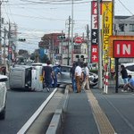 入間のアウトレット前で車2台の事故。1台逆さまに横転。片側1車線塞がってるのでこれから行く人は渋滞気をつけて! https://t.co/H6wdV5QouP
