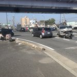朝8時台の事故。分離帯に突っ込んだ車は左右のドアと正面に大きな凹み傷。どうしてこうなるのか想像がつかない。 https://t.co/8kAqZ21iFT