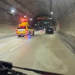 そろそろ帰りたいのに通れません(泣) 会社の真ん前の高架と側道の分離帯に車が突っ込んで横転しました。幸い運転手さんは軽傷でリヤのハッチを開けて助け出しました。 通行止めはまだまだ続きそうです😹 #MMM765 https://t.co/XjVb8PhrNh