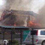 1本裏の道で火事。 消防車の音うるさいし臭いが玄関までするから何かと思ったらヤバすぎる💦 怖い https://t.co/D3KleqyGlk