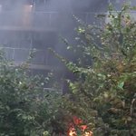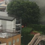 なんか焦げ臭いと思ったら目の前のビルが火事だ😱 消防車が沢山来てる🚒 早く消火して~🔥💦 (動画)