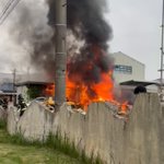津青果市場の倉庫で火災 炎が上がる