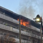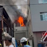 大阪市消防局 出場区分 一般住宅火災指令 第二出場 東淀川区豊里 現在火はおさまる。 三階部分全焼。 6時02分残火処理中 一部の隊削減中! #大阪市消防局 #大阪市 #東淀川区 #火災 #消防車 https://t.co/PZ1EMyRTvl