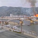 西岩国駅に居たら、いきなりサイレンが鳴って消防車が。 岩国4丁目付近で一般建物火災らしい。歩道橋にて、この煙かな? #岩国 #火災 https://t.co/zxhZLesjHw