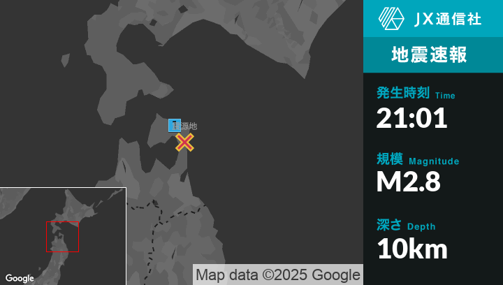 | 2025年12月7日21:01頃 | 青森県下北地方 | 1 | M 2.8 | 10.0km |