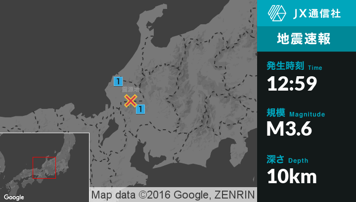 | 震度1 | 福井市, 越前市, 福井池田町, 南越前町, 越前町, 揖斐川町 |