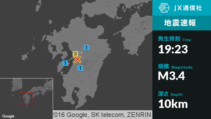 | 震度2 | 八代市, 宇土市, 熊本美里町 |