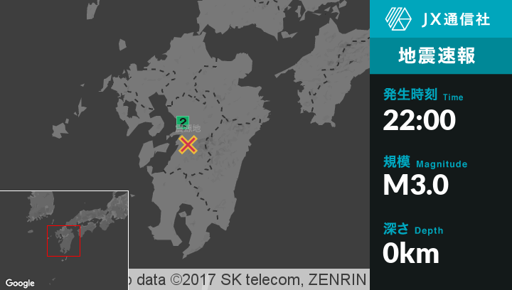 | 震度1 | 宇土市, 熊本美里町, 氷川町 |