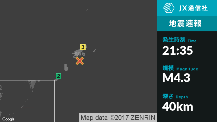 | 震度3 | 奄美市, 大和村 |