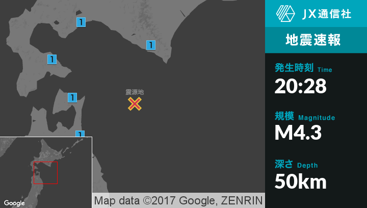 | 震度1 | 函館市, 厚真町, えりも町, 八戸市, 十和田市, 野辺地町, 七戸町, 東北町, 六ヶ所村, 五戸町, 青森南部町, 階上町, むつ市, 東通村 |