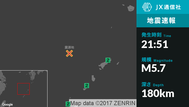 | 発生時刻 | 2017年8月16日 21時51分頃 |