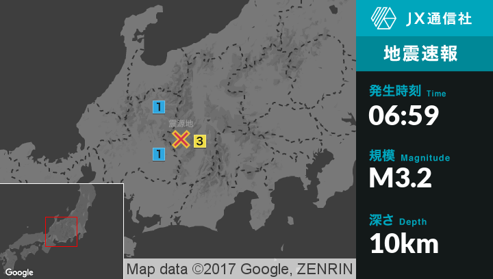 | 震度1 | 上松町, 高山市, 中津川市 |