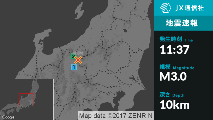 | 震度1 | 須坂市, 中野市, 山ノ内町, 信濃町, 筑北村 |