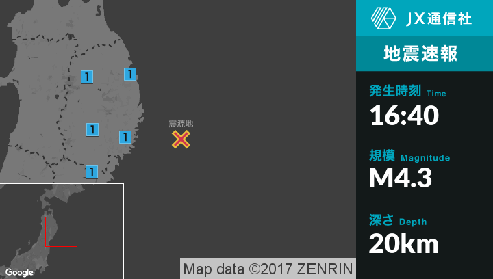 | 震度1 | 山田町, 住田町, 盛岡市, 八幡平市, 一関市, 南三陸町 |