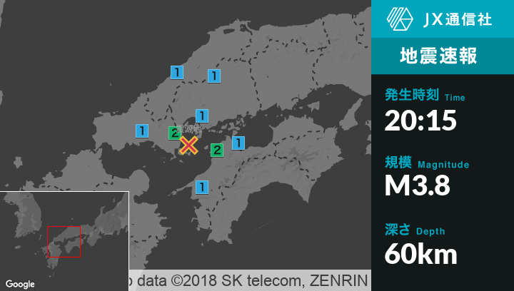 | 震度2 | 周防大島町, 松山市 |