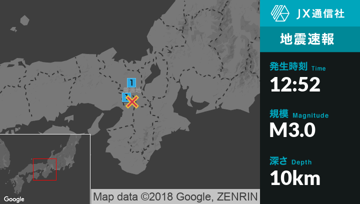 | 震度1 | 京都伏見区, 八幡市, 久御山町, 大阪東淀川区, 枚方市, 寝屋川市, 交野市 |