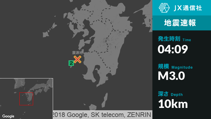 8月9日 4時09分頃発生した地震(最大震度2)