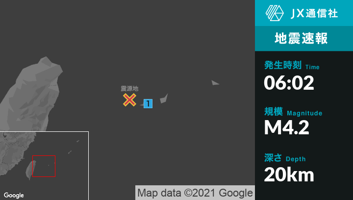 1月21日 6時02分頃発生した地震(最大震度1)