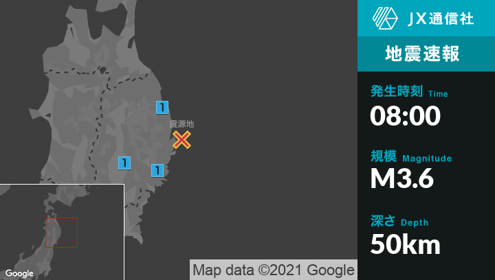 1月21日 8時00分頃発生した地震(最大震度1)
