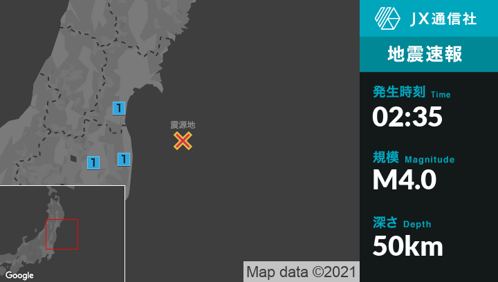 7月28日 2時35分頃発生した地震(最大震度1)