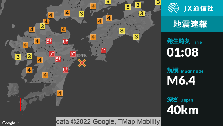 | 震度5弱 | - 大分県