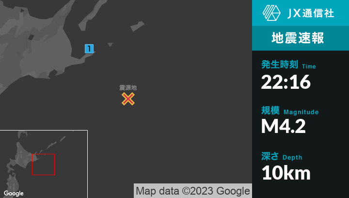 1月22日 22時16分頃発生した地震(最大震度1)
