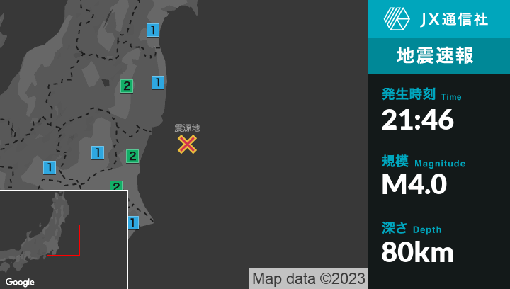 4月7日 21時46分頃発生した地震(最大震度2)