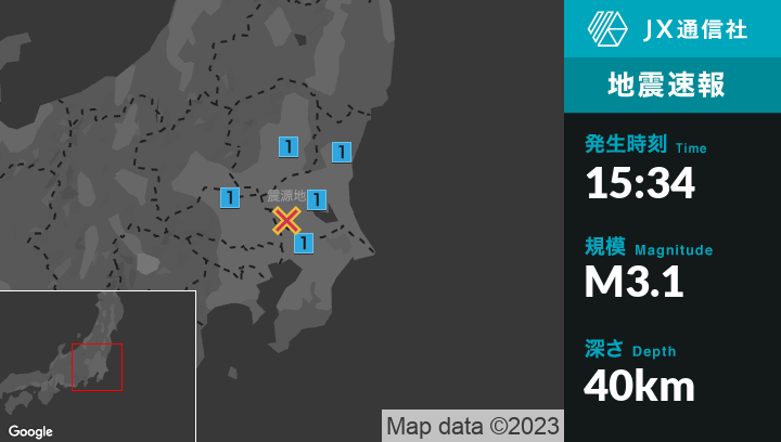 5月23日 15時34分頃発生した地震(最大震度1)