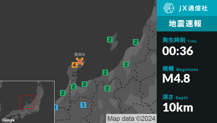 | 発生時刻 | 2024年1月4日 0時36分頃 |