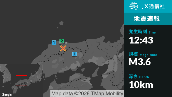 1月6日 12時43分頃発生した地震(最大震度2)