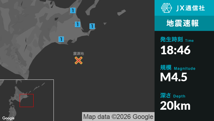 1月18日 18時46分頃発生した地震(最大震度1)