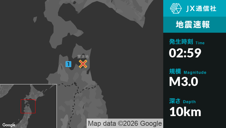 2月15日 2時59分頃発生した地震(最大震度1)