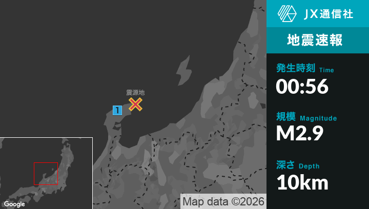 3月2日 0時56分頃発生した地震(最大震度1)