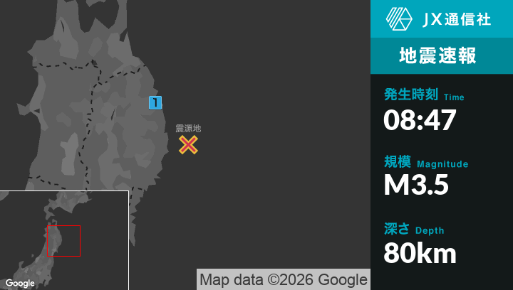 3月30日 8時47分頃発生した地震(最大震度1)