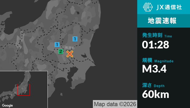 4月2日 1時28分頃発生した地震(最大震度2)