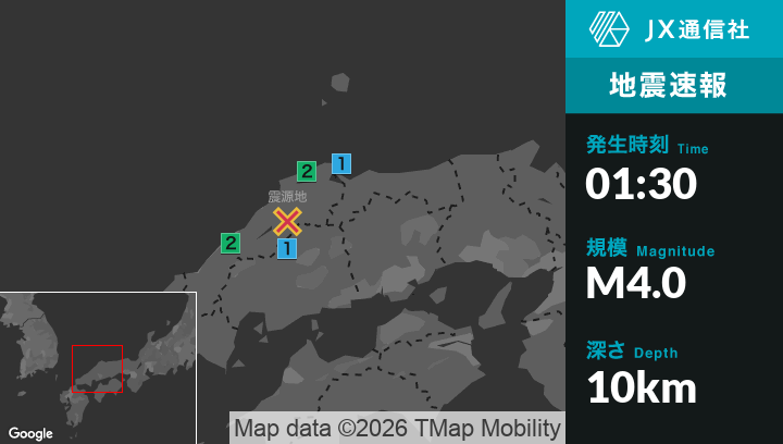 4月12日 1時30分頃発生した地震(最大震度2)