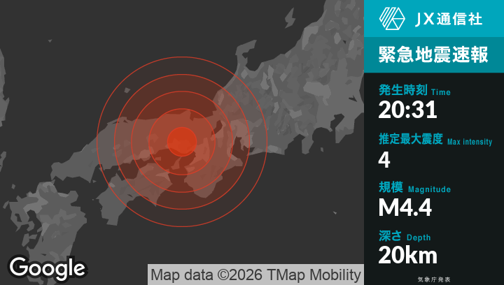 2026年3月25日20:36 この地震に対する最新の情報が更新されました。