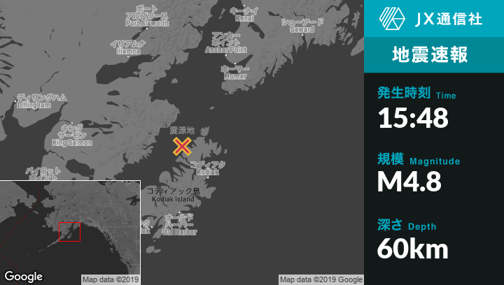 | 震源地 | アラスカのKodiak Stationから北北西75kmの地点 |