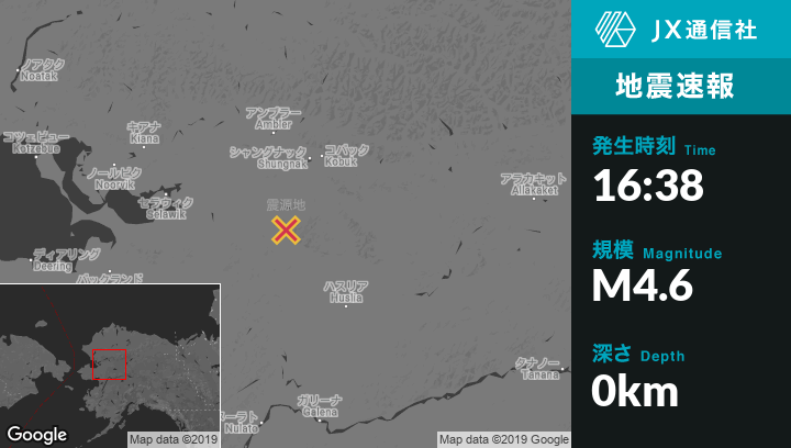 | 震源地 | アラスカのKobukから南南西69kmの地点 |