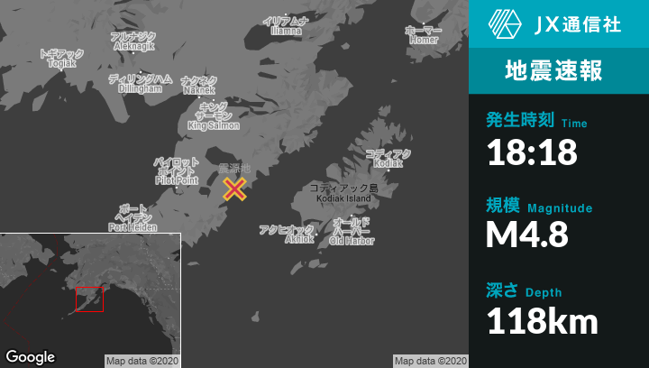 | 震源地 | アラスカのKing Salmonから南南東123kmの地点 |