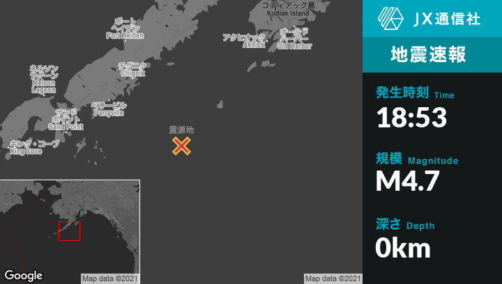 | 震源地 | アラスカのChignikから南東158kmの地点 |