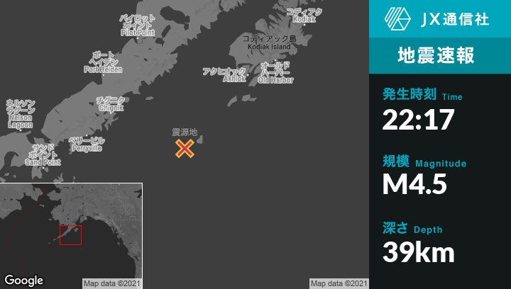 | 震源地 | アラスカのChignikから東南東155kmの地点 |