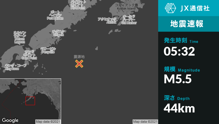 | 震源地 | アラスカのChignikから南東146kmの地点 |