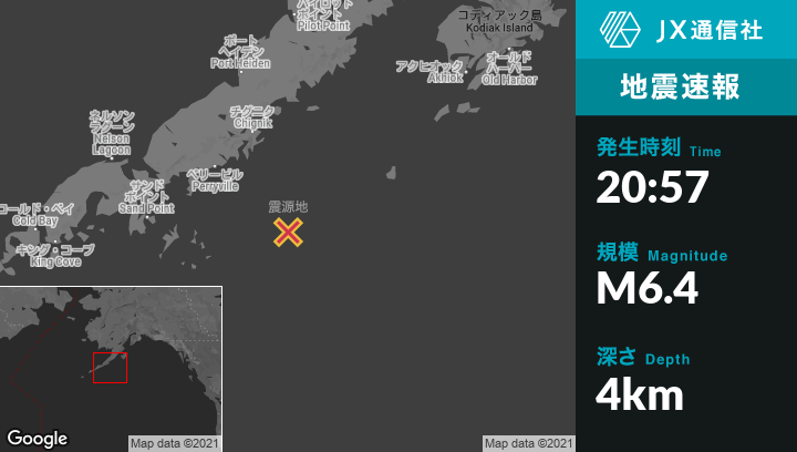 | 震源地 | アラスカのPerryvilleから南東117kmの地点 |