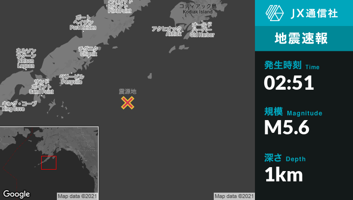 | 震源地 | アラスカのChignikから南東162kmの地点 |