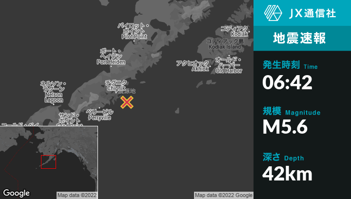 | 震源地 | アラスカのChignikから東南東35kmの地点 |