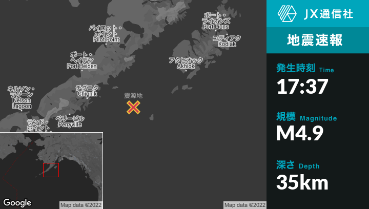| 震源地 | アラスカのChignikから東123kmの地点 |